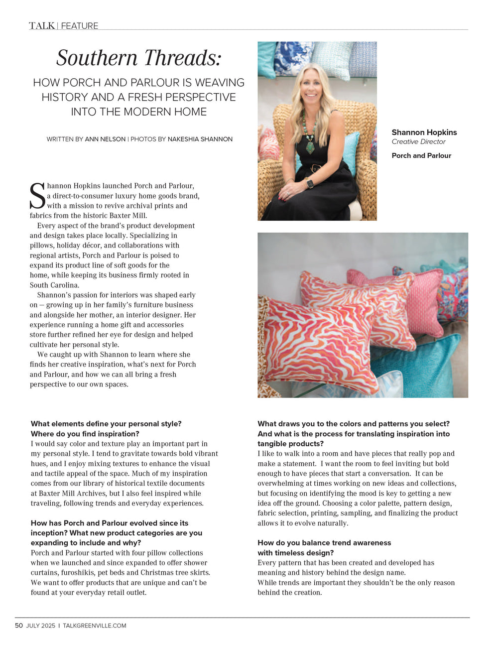 Shannon Hopkins, creative director of Porch and Parlour Home, grew up in the home furnishings business, accompanying her grandfather to the Atlanta furniture market. Now, with her love for design...